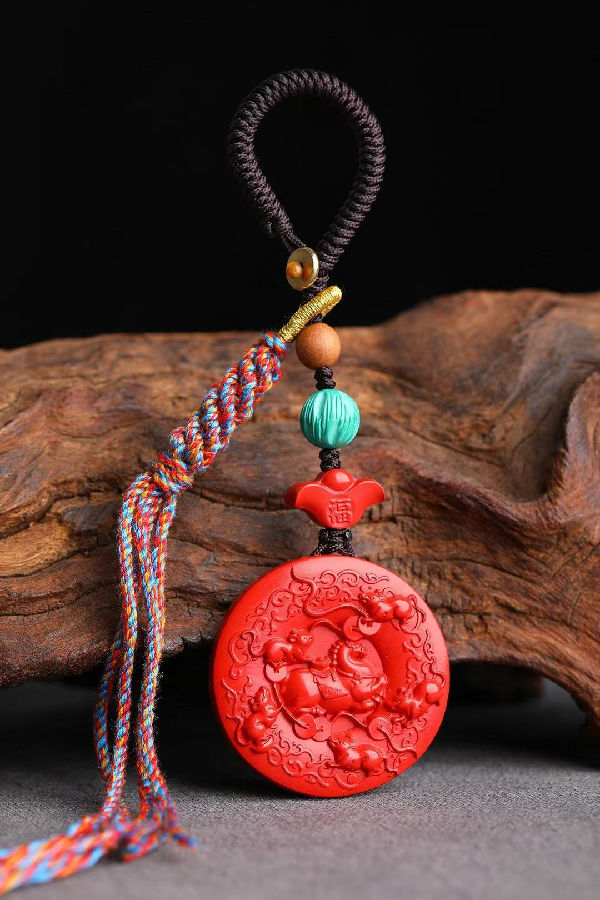 根據朱砂所具有的傳統寓意,特將朱砂研制成各種飾品,其通紅亮眼,精美異常。據民間相傳,佩戴朱砂飾品能化解太歲,辟邪消災,助睡眠,通血脈,非常適合有車一族、小孩、老人、上班族、醫生、護士等人群佩戴或安放